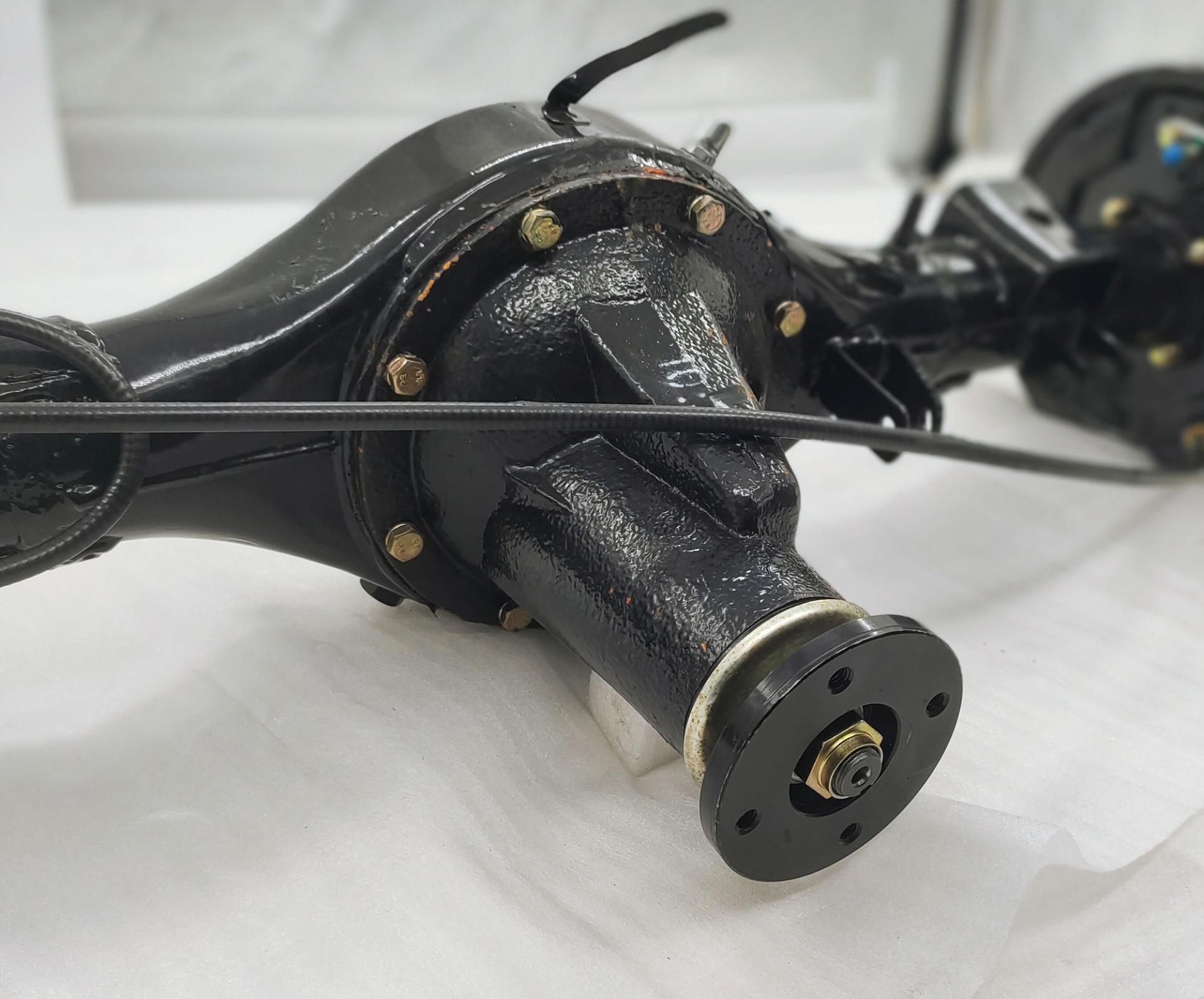 特点:1减速器总成盆角齿采用双曲面弧齿、配对研磨滚检,运载过程传动平稳、噪音低,载荷大,抗冲击,齿轮使用寿命长