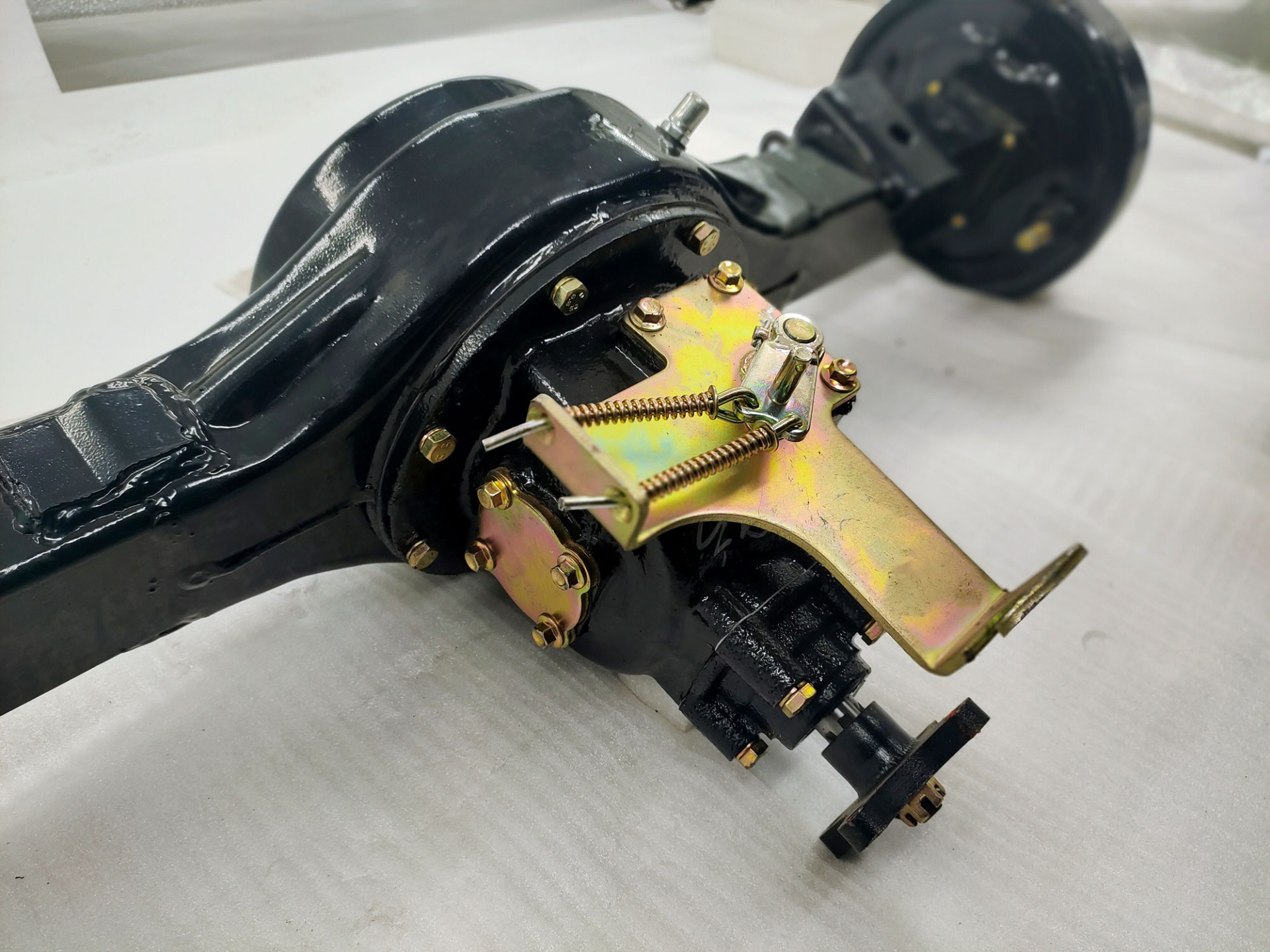 这款后桥主要是结合了加重型后桥和加力王后桥的特点:1载重量比加重型大,2它不需要增变速箱也达到加力变速机构换档灵活,轻松,可靠,操纵简易,其同步结构耐磨损,耐冲击